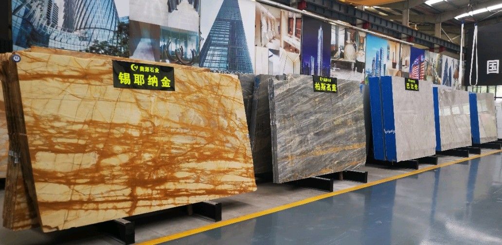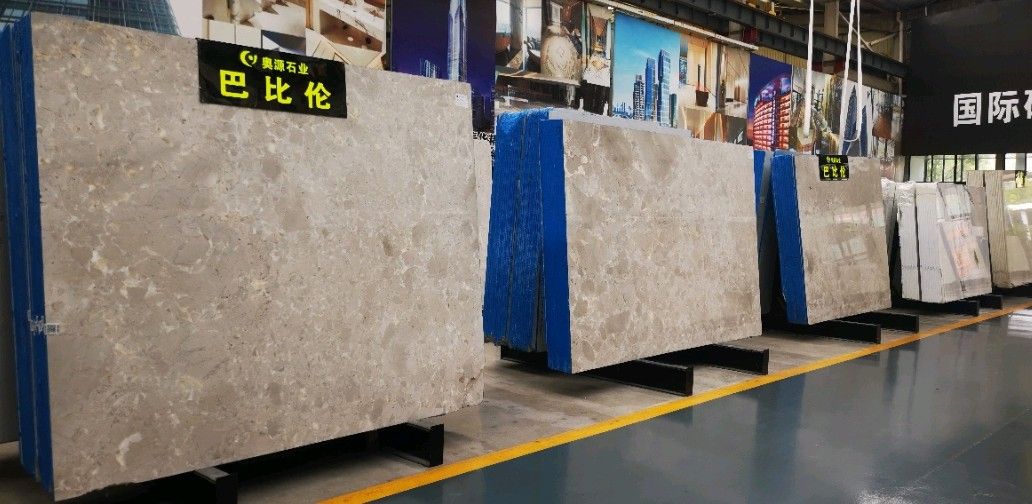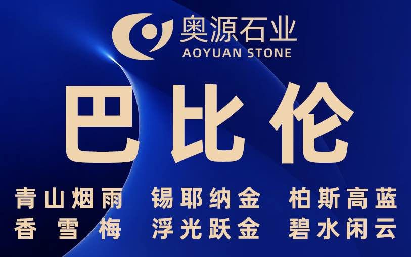 奧源主營品種:巴比倫、青山煙雨、多佛米黃、圣地亞、星河、錫耶納金、香雪梅、貝金米黃、柏斯高藍(lán)