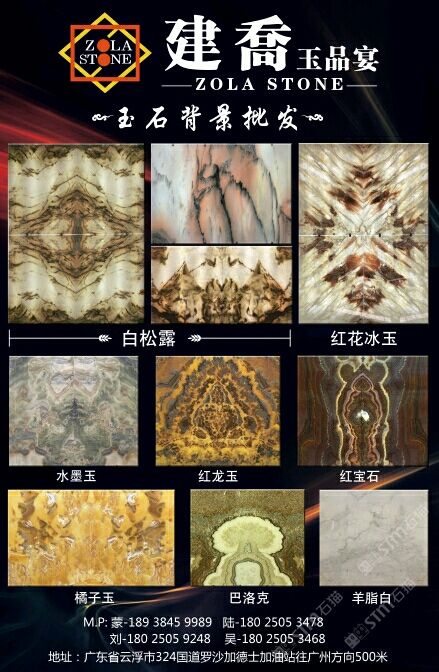 本公司有現(xiàn)貨各類精品高檔玉石背景墻。圖案精美,品種多樣,各種大小尺寸拼圖,板材足足1.8厚。歡迎來(lái)電咨詢!