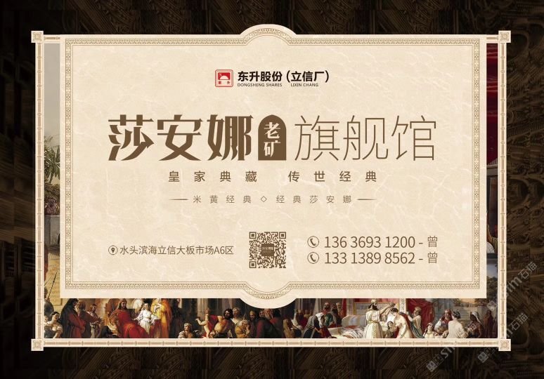中國福建南安水頭鎮(zhèn)濱海工業(yè)區(qū)立信大板市場A6區(qū)東升老礦莎安娜批發(fā)中心