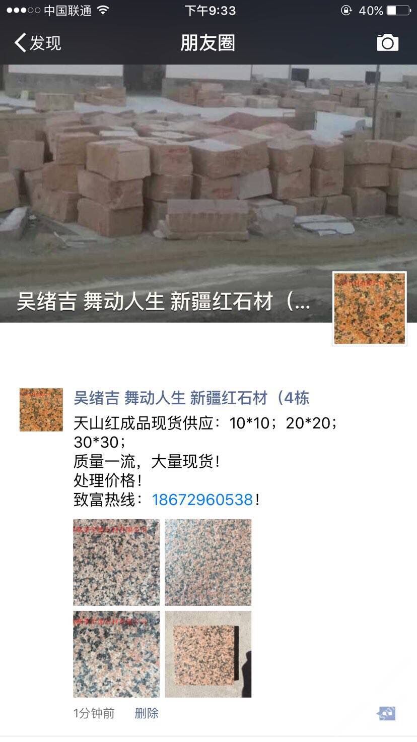 鄯善縣至德石業(yè)有限公司位于美麗的葡萄之鄉(xiāng)~新疆吐魯番鄯善縣鄯善石材工業(yè)園。本公司主要經營天山紅,新疆紅,鄯善紅,新疆黃,雪蓮花,灰麻等各類新疆石種,擁有先進的生產設備, 雄厚的技術力量,是一家集礦山開采,石材加工,銷售于一體的多年老品牌石材公司。本公司還設石材銷售點于各個大型建材市場,廣東云浮市思勞,廣東云浮市珠洞,福建省水頭鎮(zhèn)閩南建材市場。承諾滿足不同地區(qū)的采購商多種需求。我們期待您的來電,竭誠歡迎新老客戶共創(chuàng)雙贏。