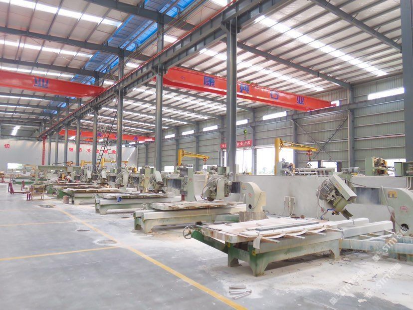 康典石業(yè)江蘇有限公司位于南通東升國際石材產(chǎn)業(yè)城內(nèi),購置土地50余畝,占地面積: 34366m,廠房面積23000m,各類石材加工先進(jìn)設(shè)備80多臺(tái)(套),各類技術(shù)人員及安裝工人500余名??档涫瘶I(yè)是集石材國際貿(mào)易、一次荒料加工、二次精品加工以及一流施工安裝為一體的大型石材企業(yè)。\\\