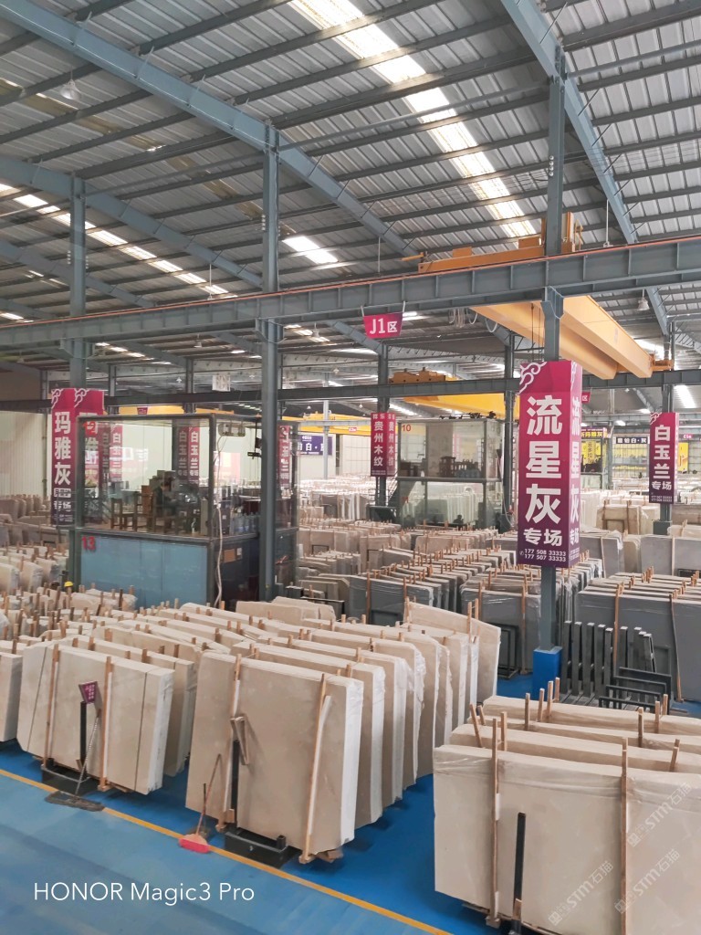 專營(yíng)白玉蘭、閃電,月均到貨量3000噸,大板庫存量白玉蘭10萬平方,閃電3萬平方