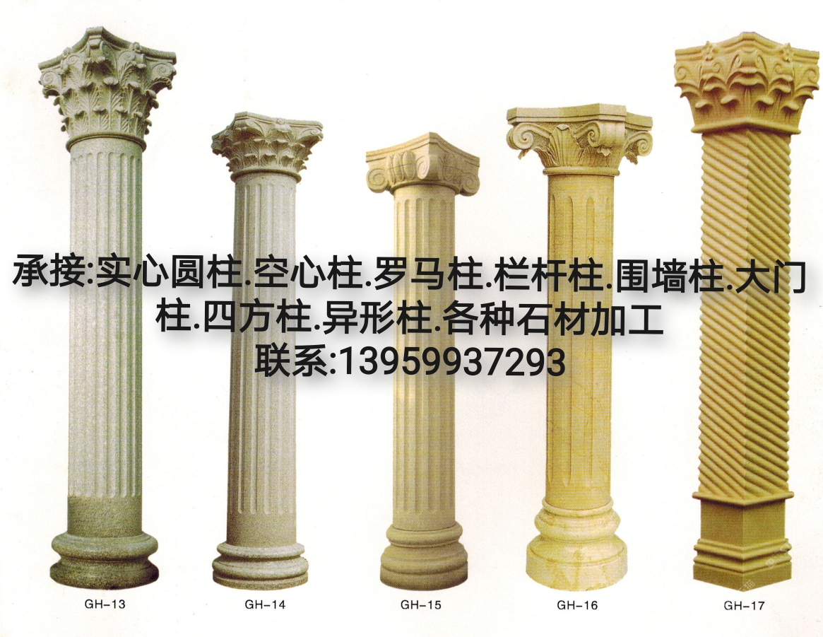 主營(yíng)業(yè)務(wù):圓柱.羅馬柱.空心柱.異形圓柱.圓球.欄桿.背景墻.祠堂.廟吟石刻字.等等.....