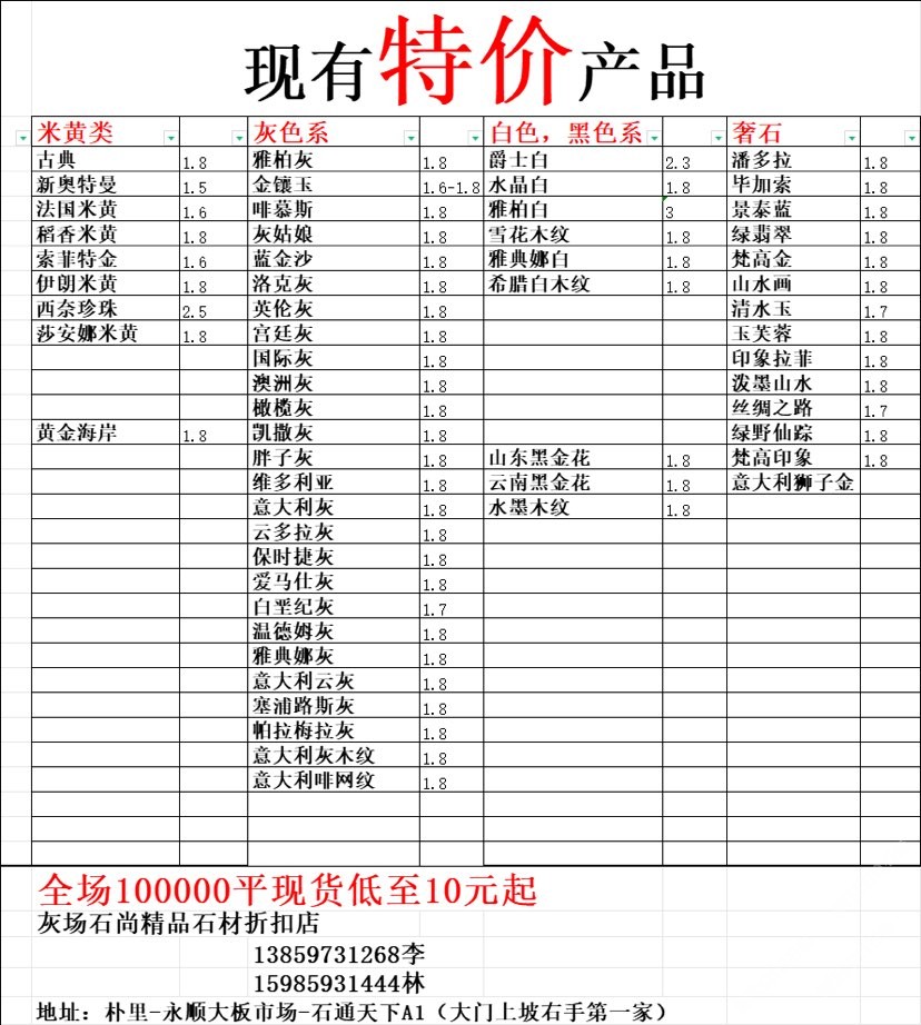 現(xiàn)有100000平大板特價(jià)(百來個(gè)品種),低至30元起