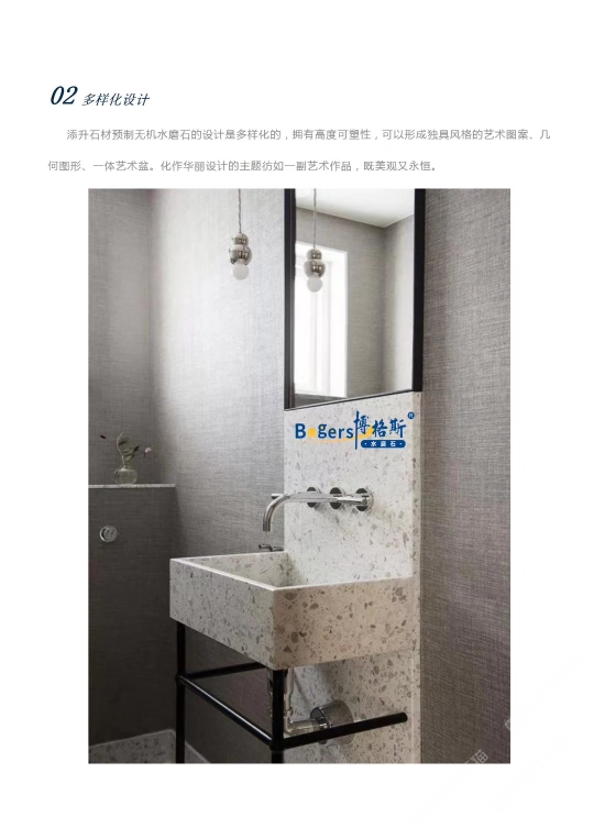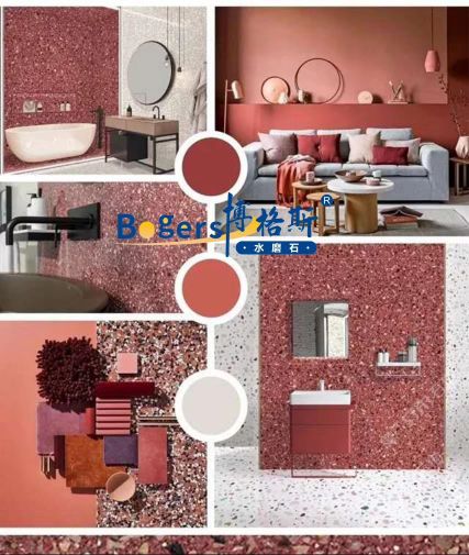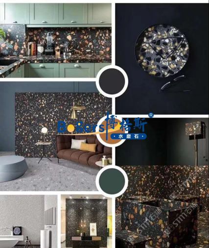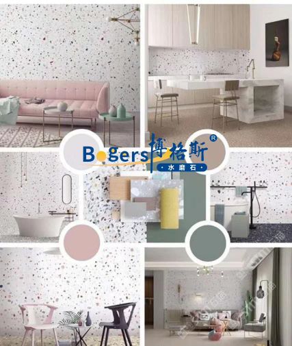 隨著工藝水平和材料品質(zhì)的巨大突破,新型預(yù)制無機水磨石采用環(huán)保型無機粘劑,不含樹脂膠水等,通過高頻高壓抽真空震動壓制而成,硬度更高更耐磨,施工更靈活方便。憑借其時髦大氣的設(shè)計呈現(xiàn)出一種慢慢的感