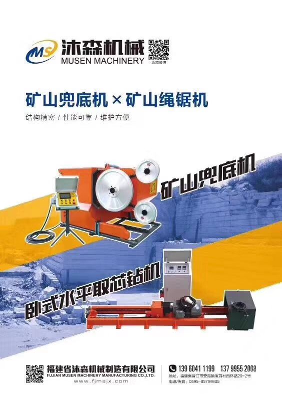 主營石材機械,金剛石繩鋸,金剛石繩鋸機,花崗巖切底機,水平鉆等礦山機械。