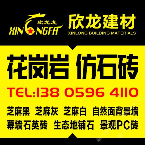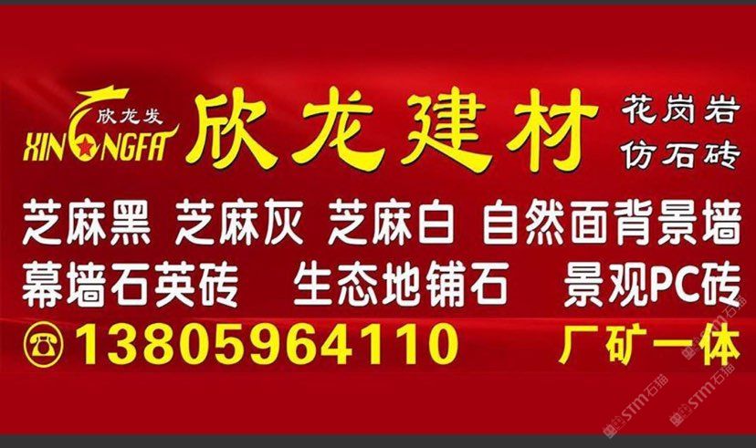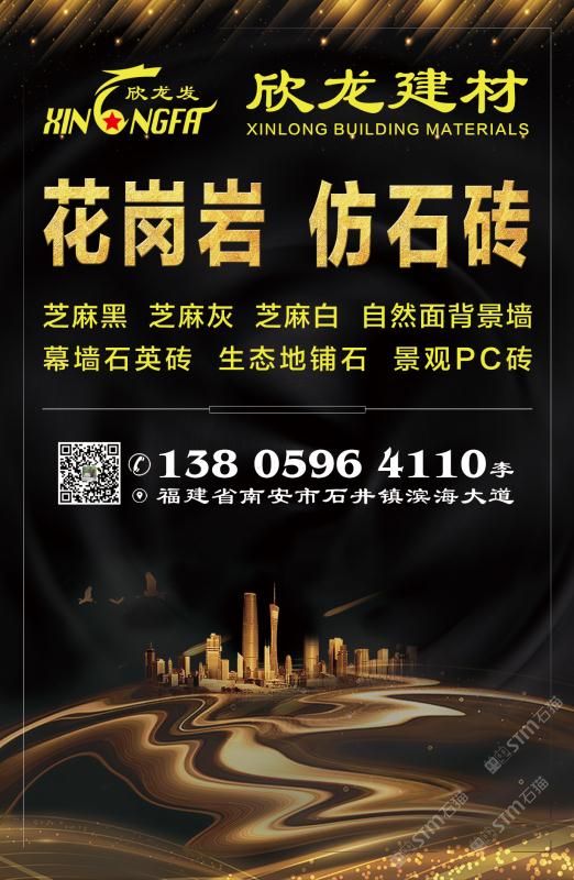 南安市欣龍建材發(fā)展有限公司,位于建材之鄉(xiāng)—福建省南安市石井鎮(zhèn),公司旗下?lián)碛袃纱笾髁Ξa(chǎn)品:花崗巖?仿石磚。(一)花崗巖:廠礦一體,荒料?大板?成品精加工,一站式供應(yīng)。擁有芝麻黑、芝麻灰、芝麻白、銹石、蝦紅、小藍(lán)寶、藍(lán)寶石、泉州紅、永定紅、福壽紅、福建青、鐘山青、喬治亞灰、G606、G617等品種,承接幕墻干掛、園林景觀、市政廣場(chǎng)、機(jī)場(chǎng)高鐵、別墅豪裝、酒店精裝、異形雕刻、自然面背景墻等工程。為石而生,匯聚石尚生活! (二)仿石磚:戶外陶瓷厚磚,接受客戶需求定制。不是石材,更勝石材!抗壓強(qiáng)度高、抗凍性能好、防滑耐磨、綠色環(huán)保。擁有幕墻石英磚、生態(tài)地鋪石、景觀PC磚、環(huán)保熔巖板、陶瓷透水磚、水泥PC磚等系列產(chǎn)品。采用先進(jìn)的技術(shù)與工藝,融匯東西方精粹,不斷創(chuàng)新,將不同文化風(fēng)尚及搭配方式重新組合設(shè)計(jì),開(kāi)發(fā)現(xiàn)代新穎的產(chǎn)品,造就逼真無(wú)瑕的自然外觀質(zhì)感,滿足全球客戶不斷發(fā)展的個(gè)性化需求。產(chǎn)品廣泛應(yīng)用于園林小區(qū)、商業(yè)地產(chǎn)、公園廣場(chǎng)、市政道路、高鐵地鐵、酒店賓館、居家庭院、步行街、寫字樓、度假村、機(jī)場(chǎng)、學(xué)校、醫(yī)院、綠道等干掛鋪裝場(chǎng)所。因?yàn)閷W?,所以專業(yè)!