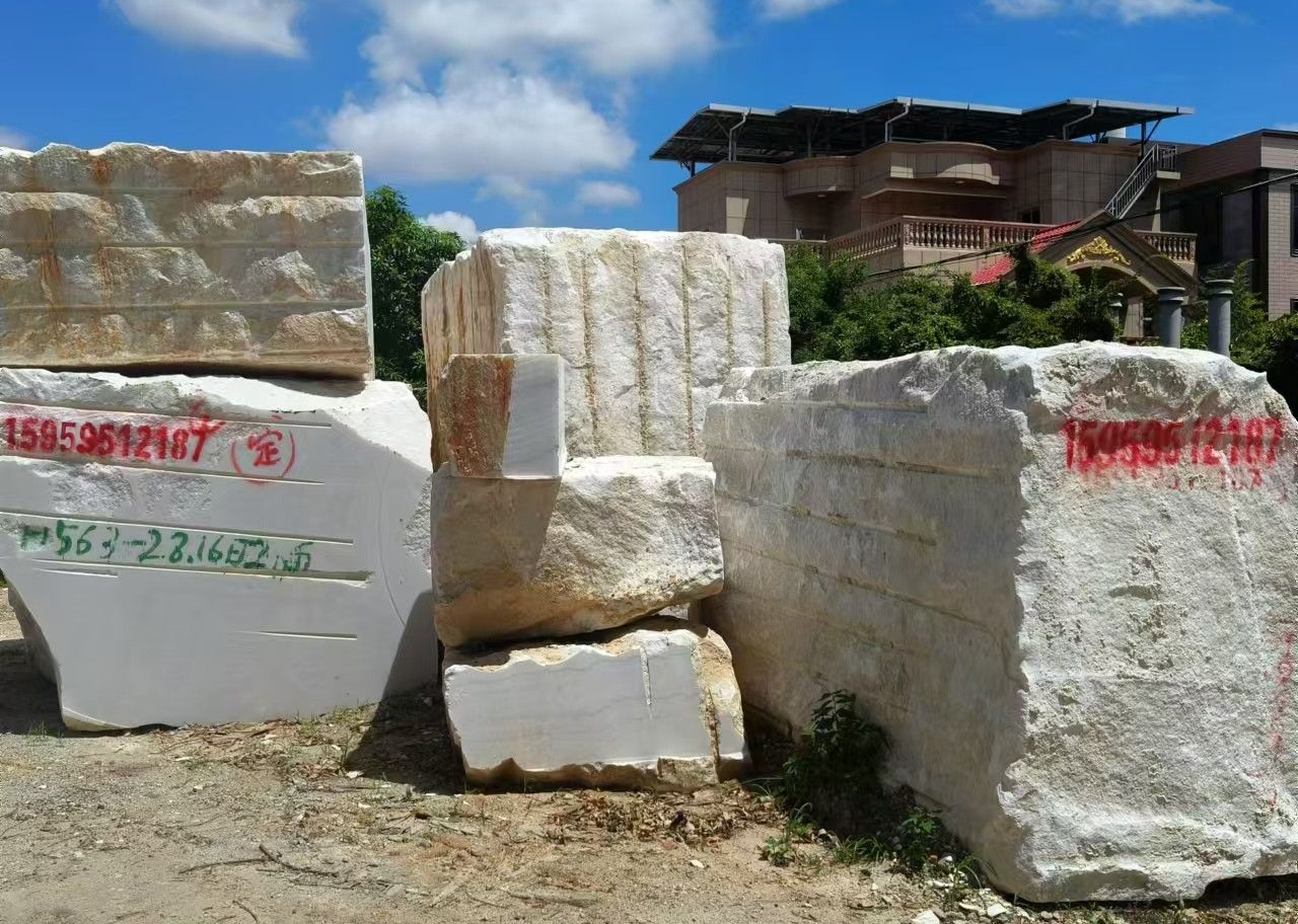 出售漢白玉廣西白荒料,定切半成品,欄桿,雕刻板等異形加工成品,自有加工廠。