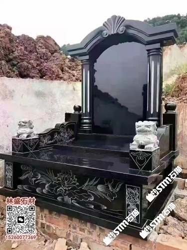 柬埔寨黑成品墓碑中式墓碑公墓印度黑山西黑芝麻黑石材