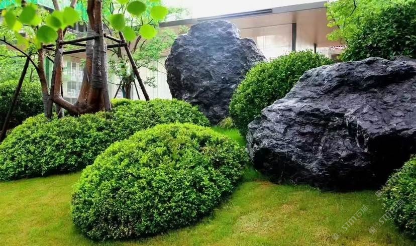 廣場黑山石造景,典雅,永不過時