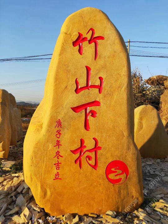 【景觀石風景石刻字石門牌石泰山石晚霞紅黃蠟石】