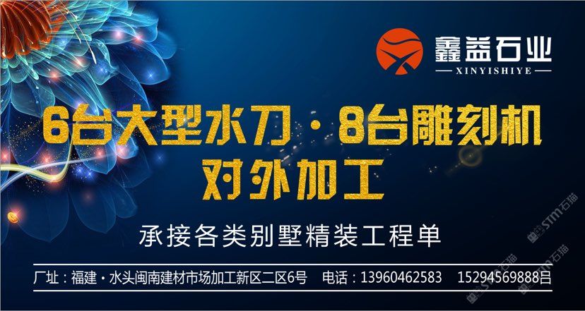 發(fā)布信息: 水刀拼花·CNC雕刻專業(yè)生產(chǎn)商!—《鑫益水刀·雕刻》 本廠配備6臺大型水刀、8臺雕刻機(jī)對外精加工,滿足各類家裝、工裝需求!期待合作 地址:福建·水頭閩南建材市場加工新區(qū)二區(qū)6號 ??:13960462583,15294569888呂