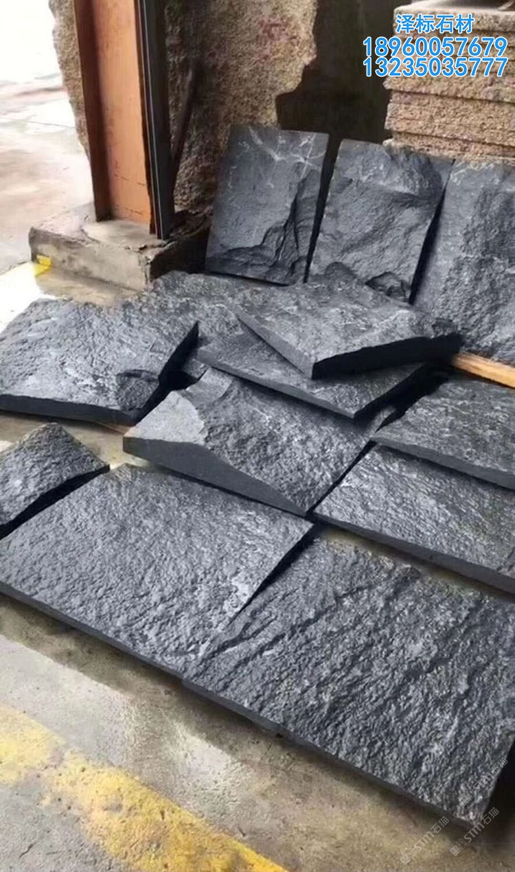 芝麻黑石材自然面外墻干掛劈裂石文化石電視背景墻定制