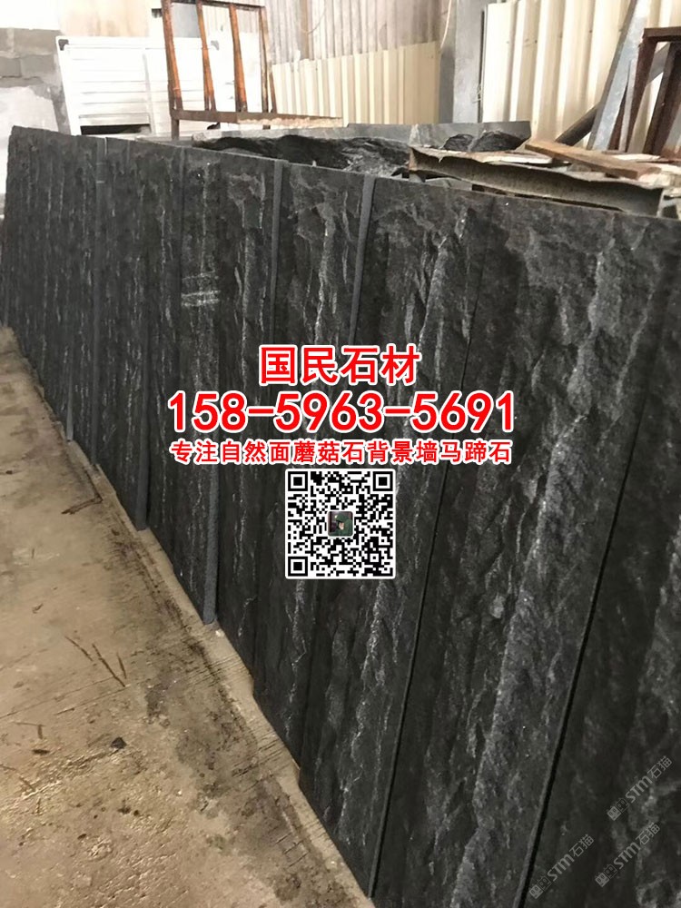 芝麻黑劈裂石背景墻自然面芝麻黑g654自然面蘑菇石
