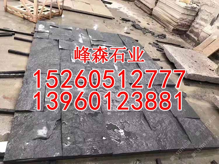芝麻黑花崗巖蘑菇石背景墻G654自然面干掛板石板材