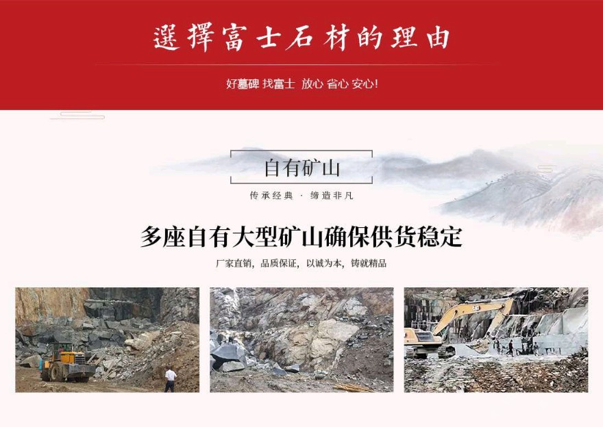 發(fā)布信息: 富士石材位于世界石雕之都——福建惠安,于1996年成立,主營墓碑生產(chǎn)、墓碑研發(fā)設(shè)計、公墓運營&殯儀館運營、公墓陵園景觀、規(guī)劃設(shè)計等一條龍殯葬服務(wù)。公司自成立以來不斷引進(jìn)當(dāng)今世界先進(jìn)的生產(chǎn)設(shè)備及加工工藝,用專業(yè)的設(shè)備造優(yōu)秀的產(chǎn)品。公司擁有一大批經(jīng)驗豐富的技術(shù)型管理人才,以嚴(yán)謹(jǐn)?shù)墓芾硖峁└咝У姆?wù),并配以先進(jìn)的電腦設(shè)計及現(xiàn)代化企業(yè)管理模式,秉承 “以客戶為中心、以質(zhì)量為根本,以市場為導(dǎo)向、以人文為基礎(chǔ)”的經(jīng)營理念,經(jīng)過將近三十年的發(fā)展,逐步發(fā)展成為一家集墓碑加工生產(chǎn)、研發(fā)設(shè)計、陵園規(guī)劃設(shè)計、公墓運營&殯儀館運營為一體的公司。