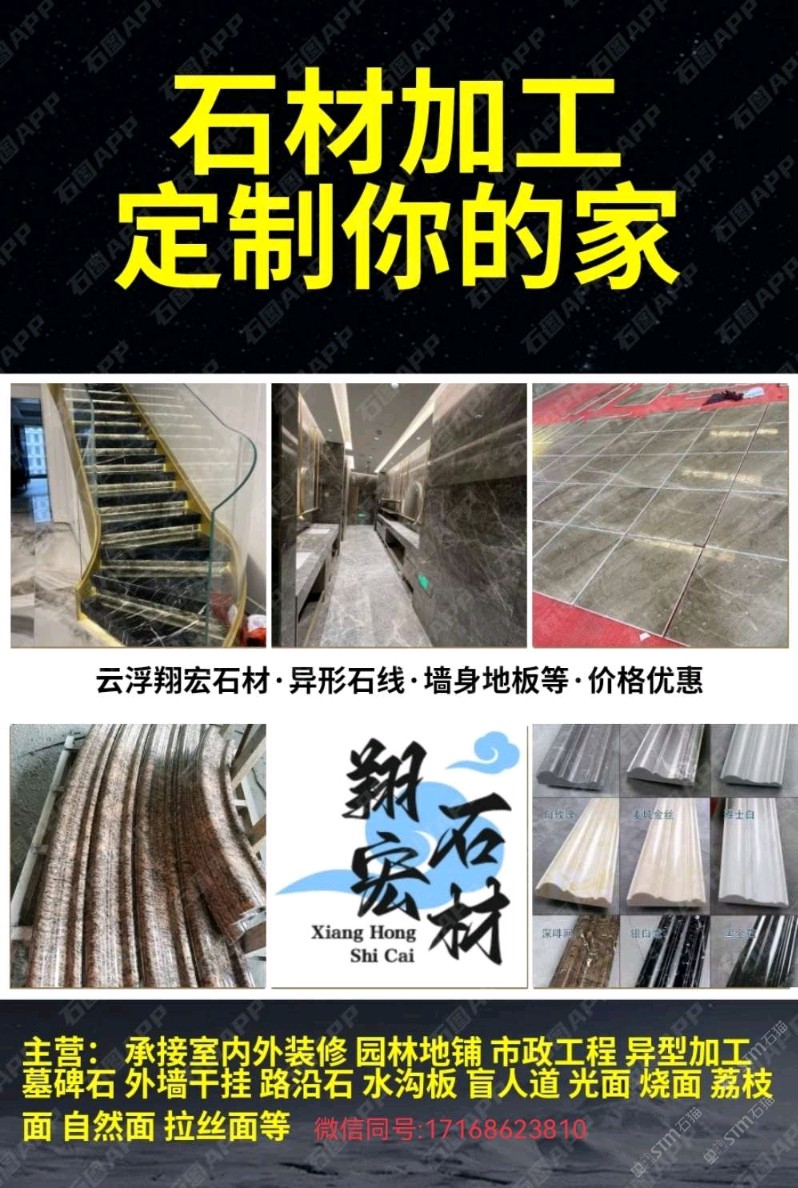 發(fā)布信息: 翔宏石材加工部,切割開料、專業(yè)對(duì)外加工、磨邊機(jī)對(duì)外加工、背景墻水溝蓋板、異型石線、線條、樓梯、室內(nèi)外墻體、洗手臺(tái)、盲人石/導(dǎo)盲石、地鋪石等