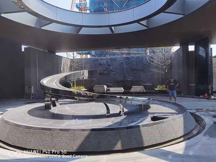 進口安哥拉黑異形水池水景石材自然面背景墻黑鉆黑水晶