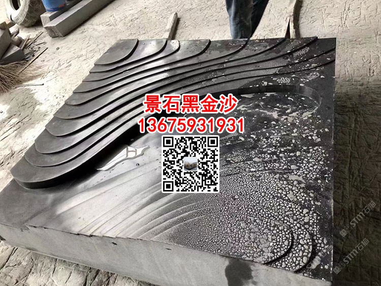 黑金沙水波紋面加工水景噴泉噴水池石材定制印度黑金砂