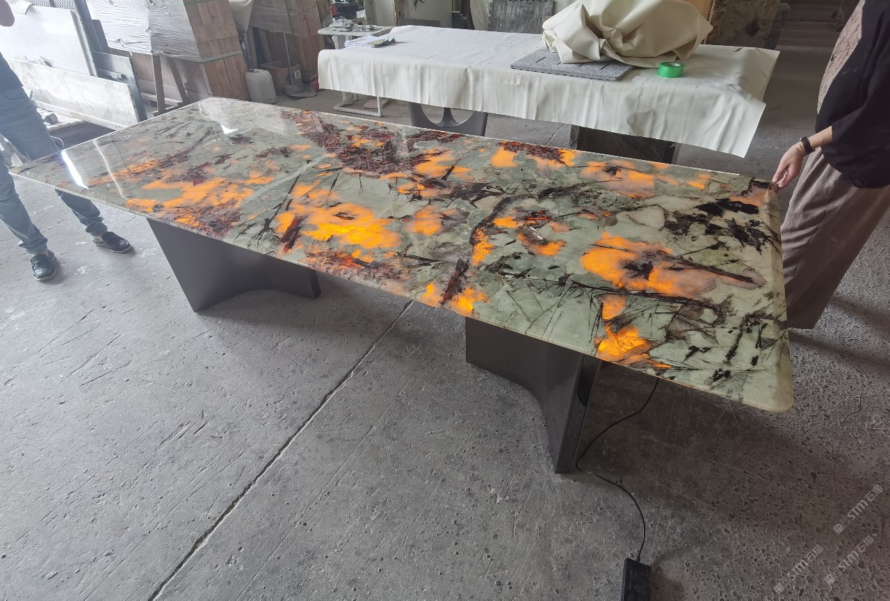 奢石家具廠鏡面封釉工藝源頭廠家高端定制透光奢石