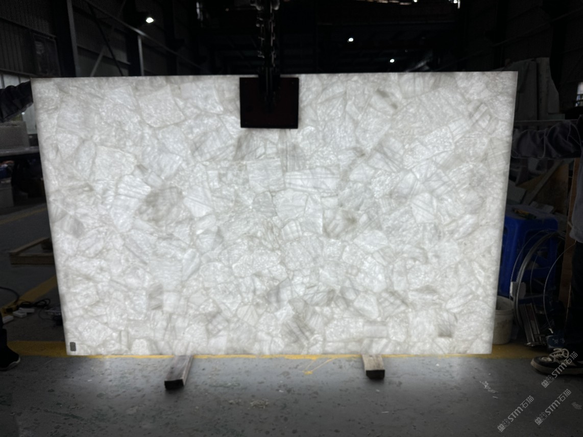 商圈 > 玉石&半寶石 > 發(fā)光白水晶大板定制,透光半寶石板材,透光奢石定制