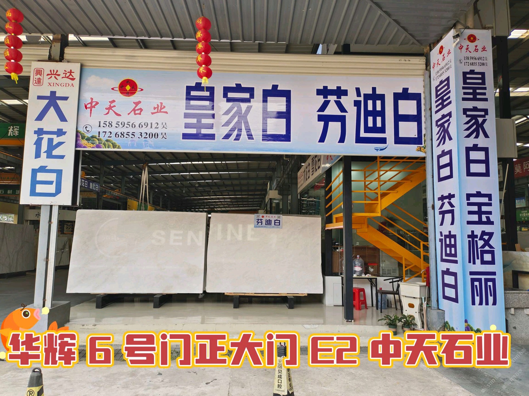 華輝市場(chǎng)中天石業(yè) 聯(lián)系人:王    138****2999 查看 138****2999 查看 主營范圍: 大板批發(fā)、大理石加工、異型加工、石材外貿(mào)、石材交易市場(chǎng)、荒料、石材工藝品、石材雕刻、礦山、 企業(yè)地址:福建泉州華輝石材城 6 號(hào)通道E2正大門左手邊 第二個(gè)行吊 中天石業(yè)