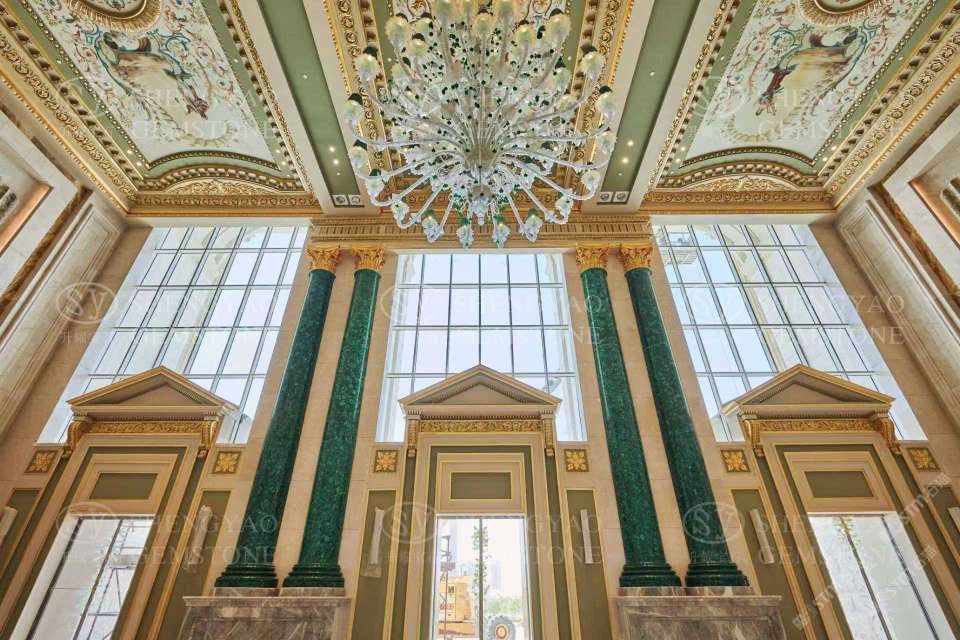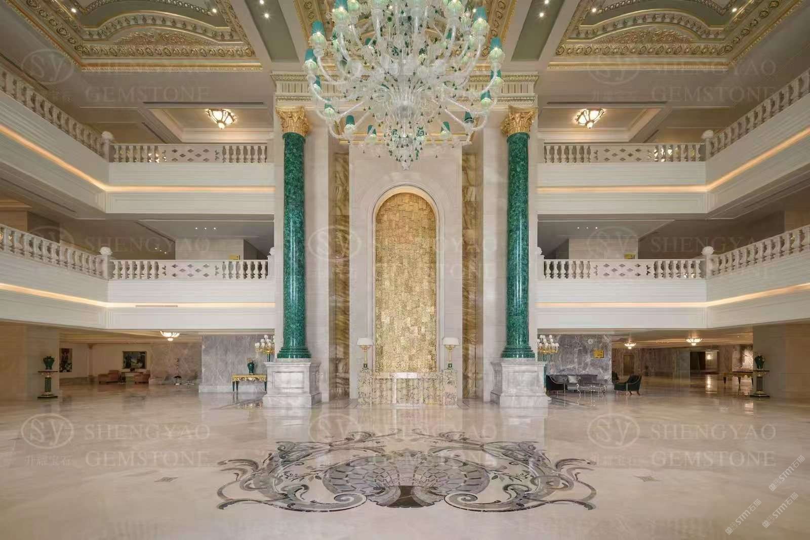 定制大尺寸孔雀石羅馬柱,半寶石羅馬柱