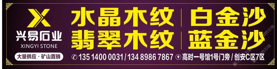 興易石業(yè) 聯(lián)系人:李女士    176****6849 查看 176****6849 查看 主營(yíng)范圍: 大板批發(fā)、荒料、礦山、大理石加工、異型加工、石材外貿(mào)、石材交易市場(chǎng)、 企業(yè)地址:福建南安創(chuàng)安大板市場(chǎng)精品倉(cāng)D區(qū)【正大門進(jìn)第一家】