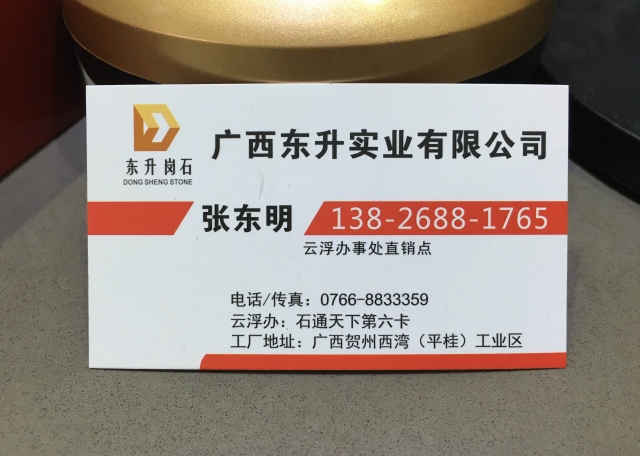 云浮市東升 聯(lián)系人:張先生    138****1765 查看 0766-****359 查看 主營范圍: 人造石加工、大板批發(fā)、礦山、 企業(yè)地址:廣東云浮石通天下第六卡