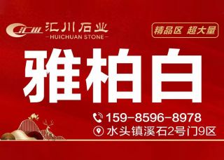 匯川石業(yè)主營產(chǎn)品:雅柏白,雅柏白2,雅柏白(雅柏灰),雅柏白(灰),雅柏白(宏大礦),鵝毛白,雅柏白(雅高礦)企業(yè)地址:福建泉州南安水頭鎮(zhèn)溪石2號門9區(qū)