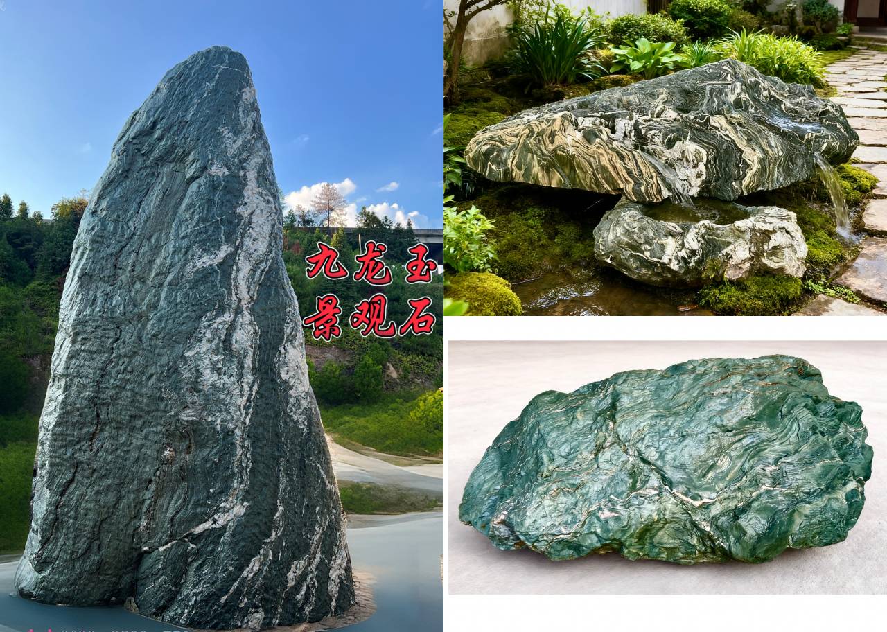描述:九龍玉景觀石是一種極具特色的天然石材,主要產于江西省吉安市永豐縣的盤龍山脈。九龍玉景觀石常被賦予吉祥、富貴的象征意義,其獨特的紋理和形態(tài)仿佛群龍歡騰,蘊含著深厚的文化底蘊,為園林景觀增添了藝術氣息。產品種類繁多,包括景觀石、切片石、石桌椅、汀步石等、洗手盆,廣泛應用于廣場、公園、別墅庭院、市政工程等場所,也可用于室內外墻面裝飾、背景墻等。